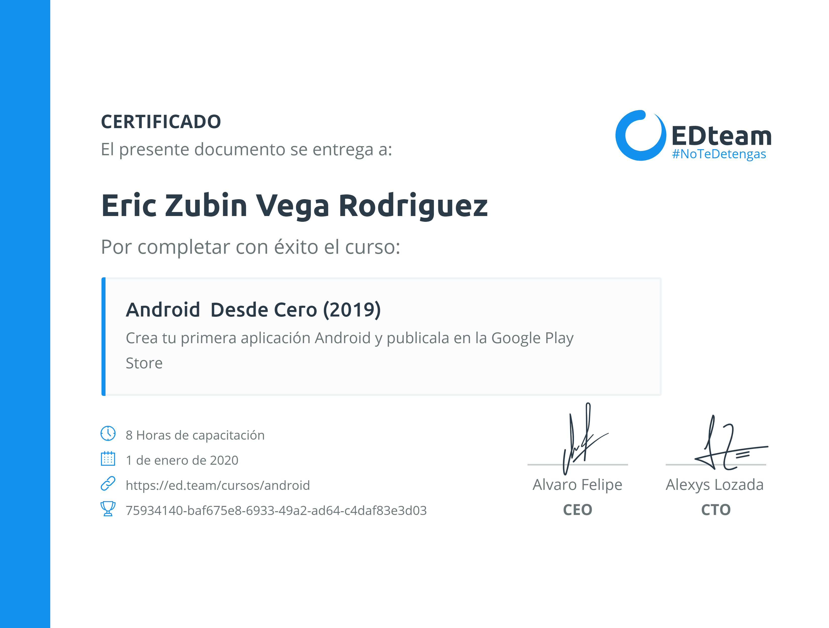 certificado-curso-android by eric.zubin@gmail.com | Sep 8, 2020 | 0 comments Submit a Comment Cancelar respuestaTu dirección de correo electrónico no será publicada. Los campos obligatorios están marcados con *Comentario * Nombre * Correo electrónico * Web Guardar mi nombre, correo electrónico y sitio web en este navegador para la próxima vez que haga un comentario.