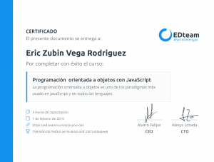 certificado-curso-js-poo-old by eric.zubin@gmail.com | Sep 8, 2020 | 0 comments Submit a Comment Cancelar respuestaTu dirección de correo electrónico no será publicada. Los campos obligatorios están marcados con *Comentario * Nombre * Correo electrónico * Web Guardar mi nombre, correo electrónico y sitio web en este navegador para la próxima vez que haga un comentario.